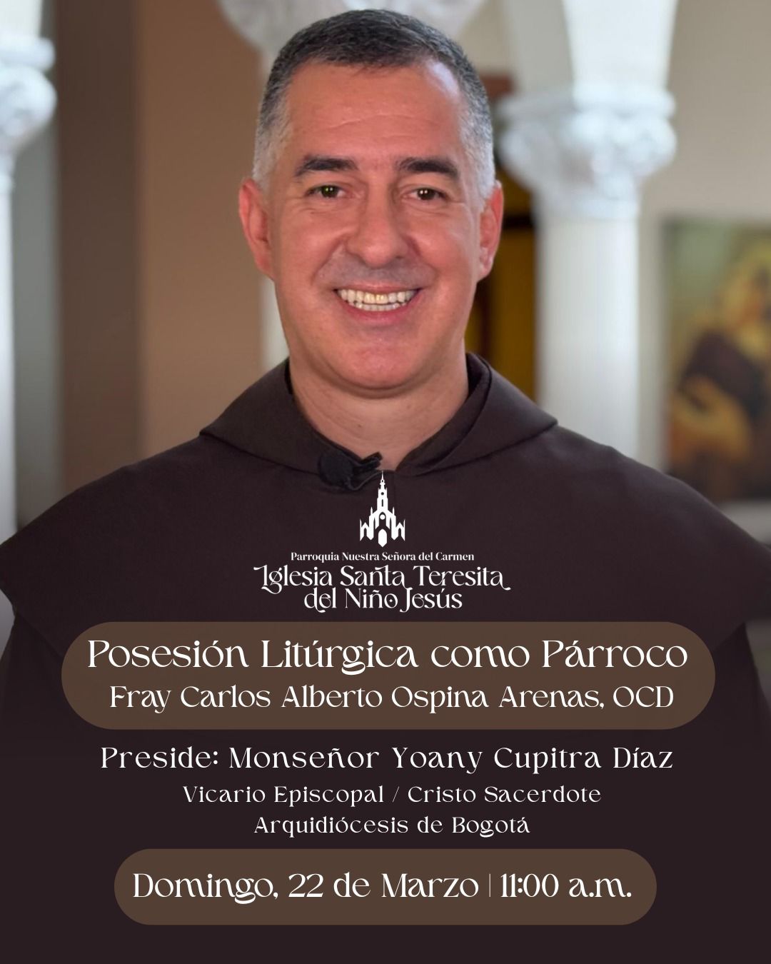 Con alegría y esperanza, te invitamos a acompañarnos en la posesión litúrgica como párroco de Fray Carlos Alberto Ospina Arenas.
